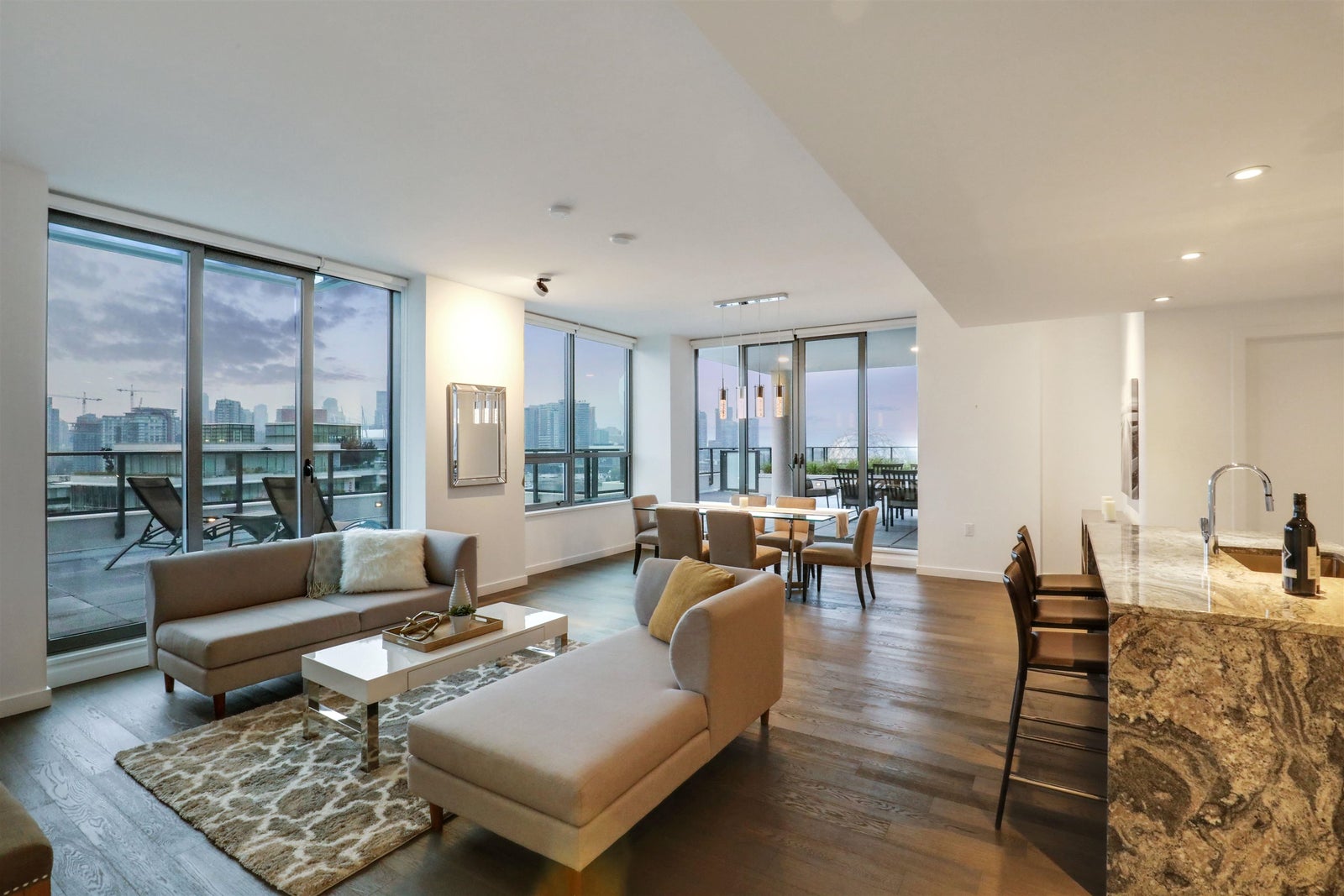 Experience the pinnacle of urban luxury in this sophisticated 2-bed, 2-bath residence. The expansive open-concept layout features floor-to-ceiling windows with stunning park and city views. Rare for the area, this home boasts two very large terraces, perfect for seamless indoor-outdoor living and entertaining. The chef’s kitchen features premium Bosch appliances and a sleek island, while the primary suite offers a spa-inspired ensuite. This home includes 2 side-by-side parking stalls and 2 storage lockers, providing ultimate convenience. Enjoy world-class amenities, including a gym and rooftop garden, just steps from the Seawall and Olympic Village. This is the perfect blend of space and style in Vancouver’s premier waterfront community. Book your private tour today!